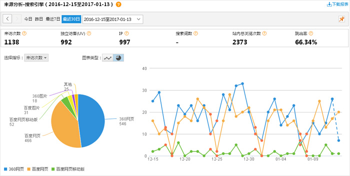 4、流量分析:一个月搜索引擎来源数据、网站流量数据