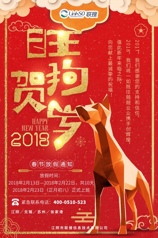 联搜科技祝您:狗年旺旺、旺事如意、旺事顺心!